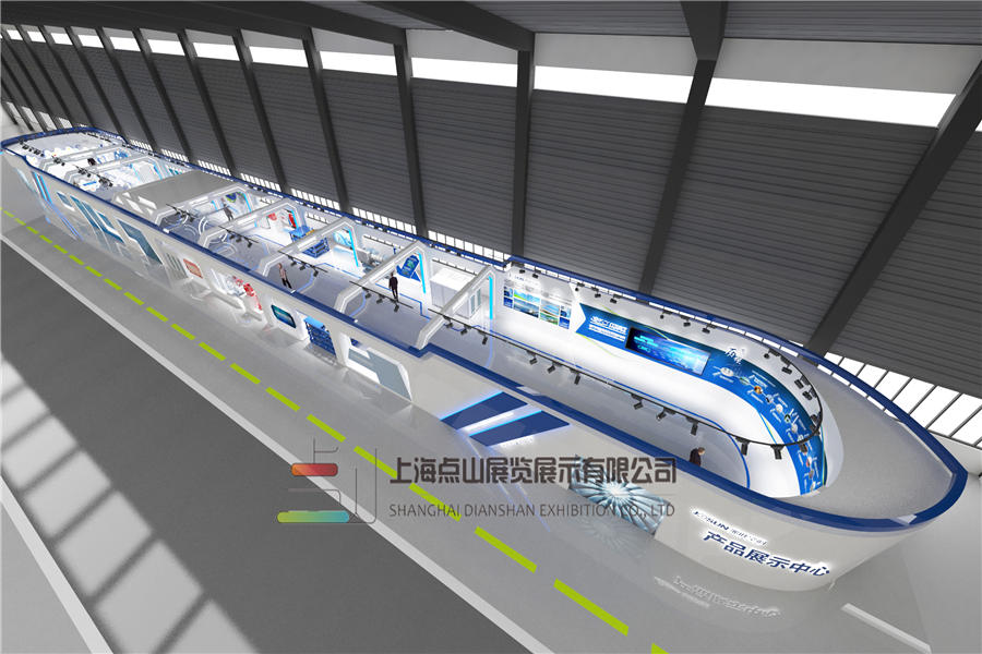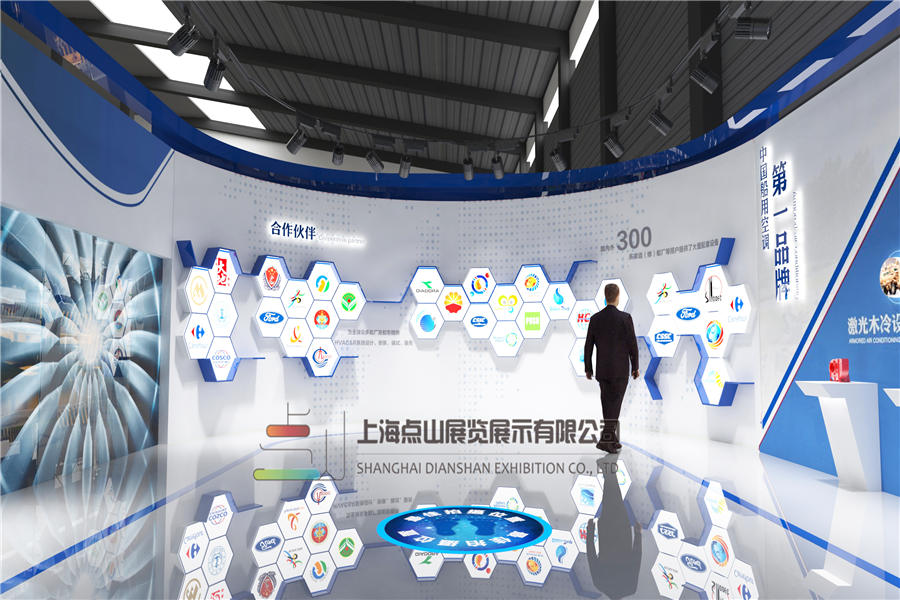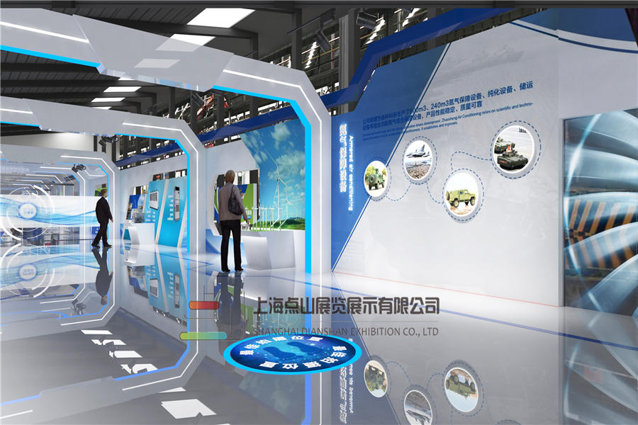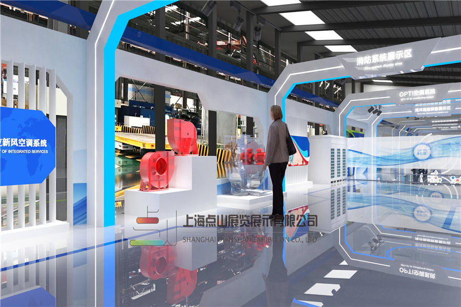 兆勝空調(diào)專(zhuān)業(yè)致力于提供各型船舶、海洋工程、海洋風(fēng)電平臺(tái)等特殊空間環(huán)境系統(tǒng)解決方案,展廳設(shè)置在車(chē)間廠房,面積狹長(zhǎng)。點(diǎn)山展示設(shè)計(jì)結(jié)合企業(yè)產(chǎn)品服務(wù)屬性,將展廳設(shè)計(jì)成軍艦造型,艦身結(jié)合設(shè)備展示特點(diǎn),做局部鏤空設(shè)計(jì),使展廳內(nèi)部空間感延伸,外部視覺(jué)效果震撼。同時(shí)在體驗(yàn)區(qū)特別設(shè)置防塵降噪功能,讓體驗(yàn)更加舒適。