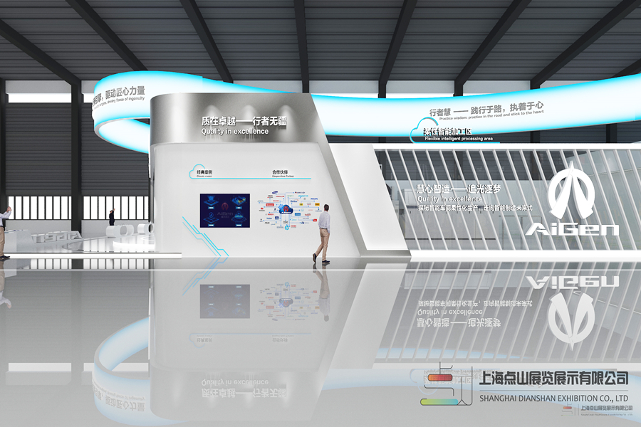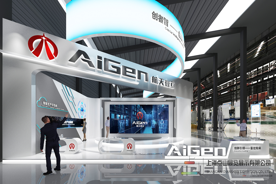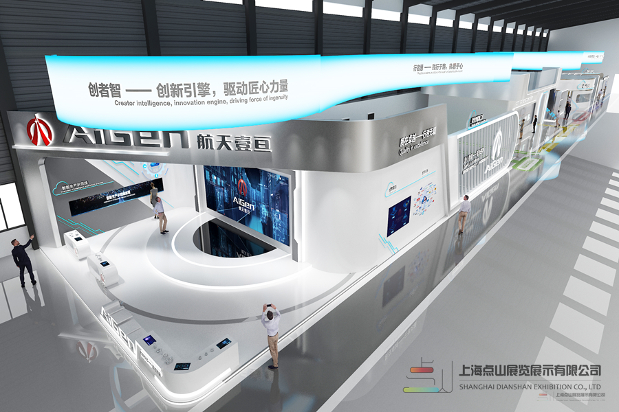 整體空間營(yíng)造高端發(fā)布會(huì)視覺(jué)效果,材質(zhì)使用金屬鋁板和烤漆飾面,營(yíng)造展廳的科技感和未來(lái)主義氛圍,凸顯航天一亙的高科技屬性,來(lái)賓進(jìn)入布展空間后,猶如身臨未來(lái)制造場(chǎng)景。