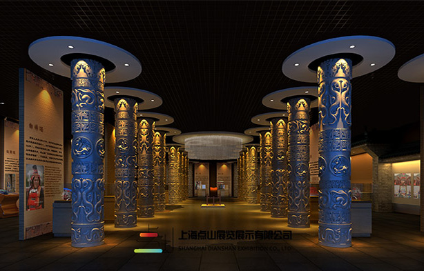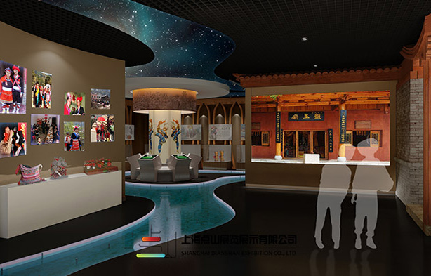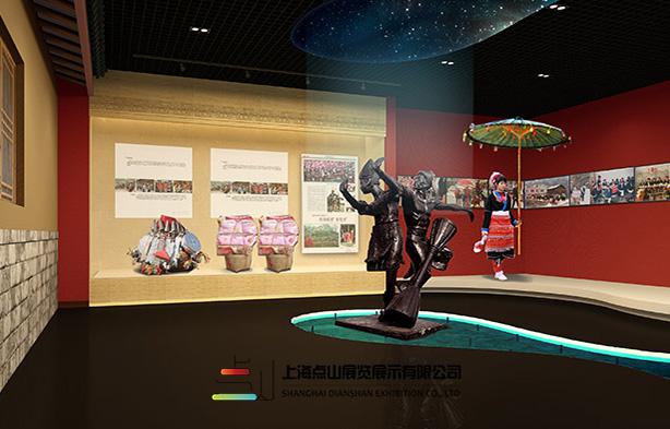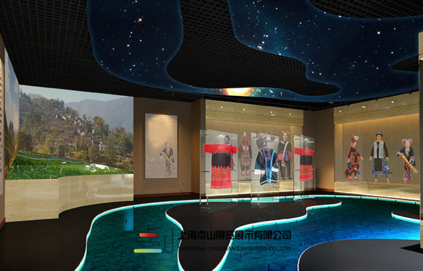 畬族博物館根據(jù)畬族民居特色來進行布展設(shè)計,陳展以緊貼畬族的發(fā)展變遷為主線,通過大量文物、實物與圖片,利用實物陳列、互動投影系統(tǒng)、展板等表現(xiàn)手法向人們講述畬族的發(fā)展史和畬族文化。