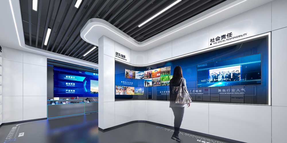 通過藝術(shù)化圖文排列形式,將企業(yè)文化和社會責(zé)任的內(nèi)容直觀的展示出來,設(shè)置電視屏幕播放員工風(fēng)采的影像資料,生動的體現(xiàn)集團(tuán)員工在落實企業(yè)文化和社會責(zé)任上做出的努力。