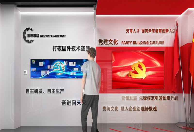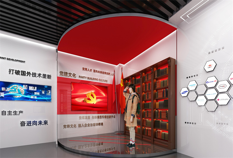 在此區(qū)域,參觀者可點(diǎn)觸播放員工風(fēng)采以及對(duì)公司未來(lái)美好的祝福的愿景。