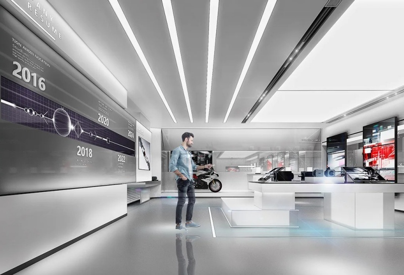 2、空間規(guī)劃:流暢的參觀體驗 合理安排空間布局是創(chuàng)造良好參觀體驗的基礎(chǔ)。一個好的空間規(guī)劃不僅要考慮到展品的擺放位置,還要關(guān)注人流走向和互動環(huán)節(jié)的設(shè)計。 動線設(shè)計:設(shè)計一條自然流暢的參觀路線,避免擁擠或迷失方向。可以通過設(shè)置引導標識或使用色彩變化來輔助導航。 多功能區(qū)劃:除了主要的產(chǎn)品展示區(qū)域外,還應(yīng)考慮設(shè)置休息區(qū)、互動體驗區(qū)等功能分區(qū),讓參觀者能夠在輕松愉快的氛圍中深入了解企業(yè)。